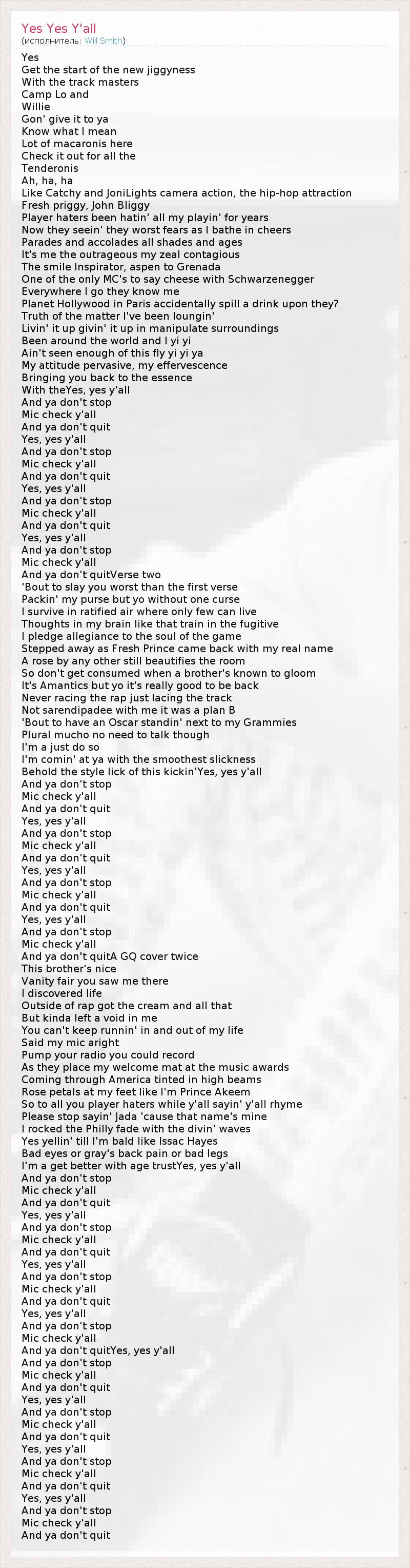 А как ты думаешь, о чем песня "Yes Yes Y'all" ?
