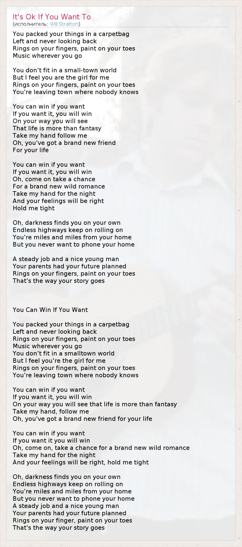 А как ты думаешь, о чем песня "It's Ok If You Want To" ?
