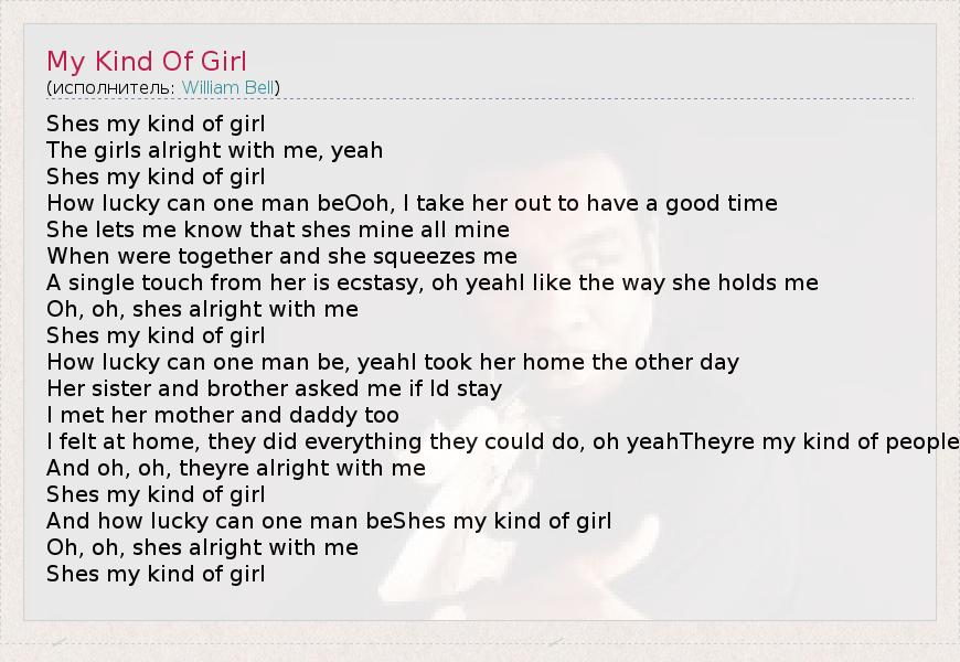А как ты думаешь, о чем песня "My Kind Of Girl" ?