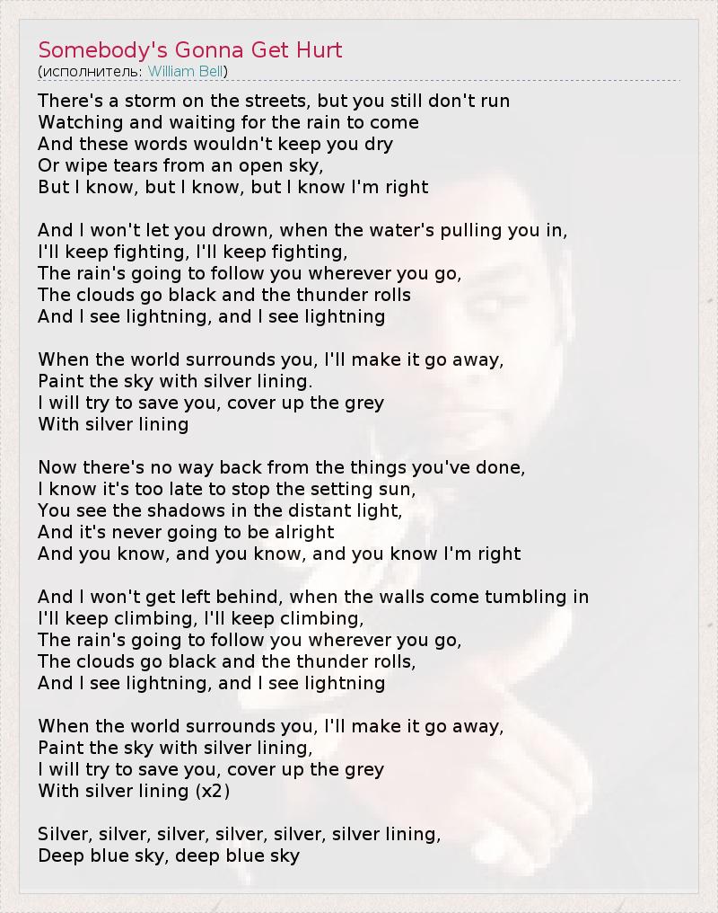 А как ты думаешь, о чем песня "Somebody's Gonna Get Hurt" ?