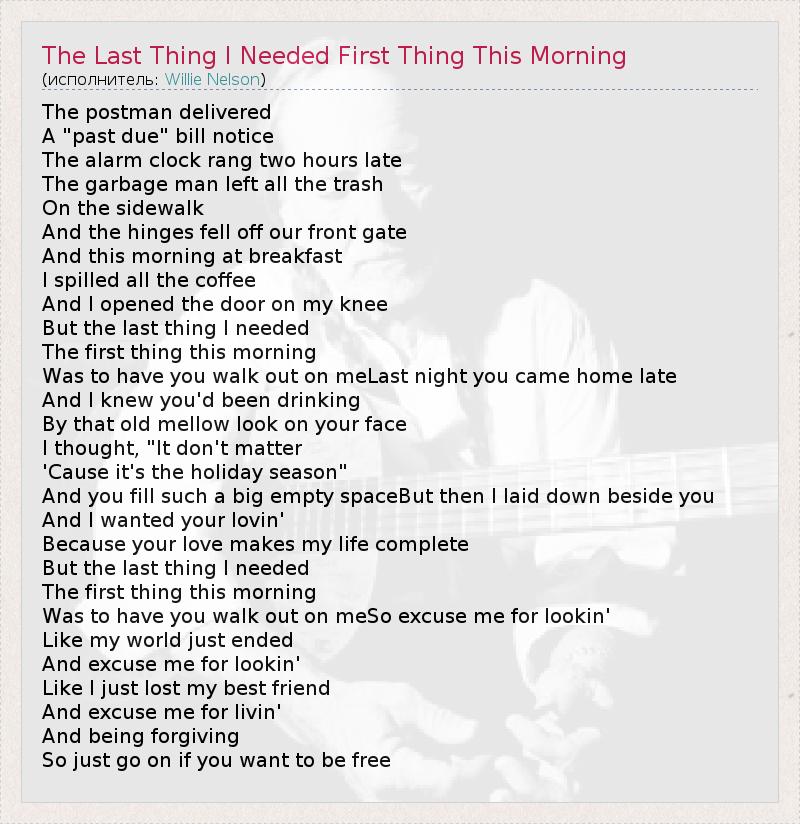 А как ты думаешь, о чем песня "The Last Thing I Needed First Thing This Morning" ?