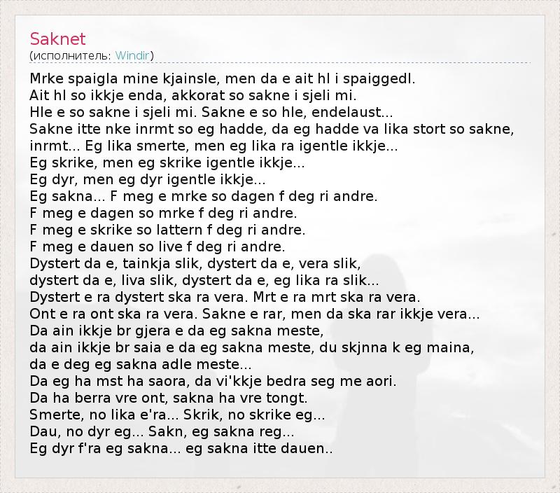 Hle e so sakne i sjeli mi. Sakne e so hle, endelaust...
