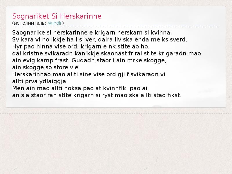 А как ты думаешь, о чем песня "Sognariket Si Herskarinne" ?