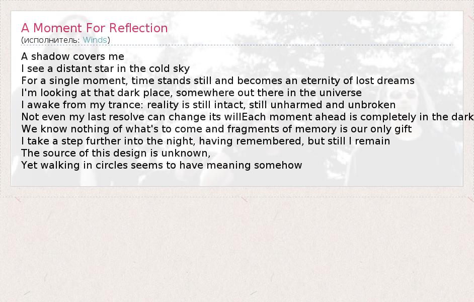 А как ты думаешь, о чем песня "A Moment For Reflection" ?
