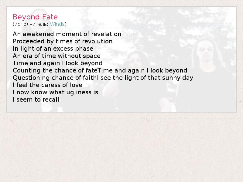 А как ты думаешь, о чем песня "Beyond Fate" ?