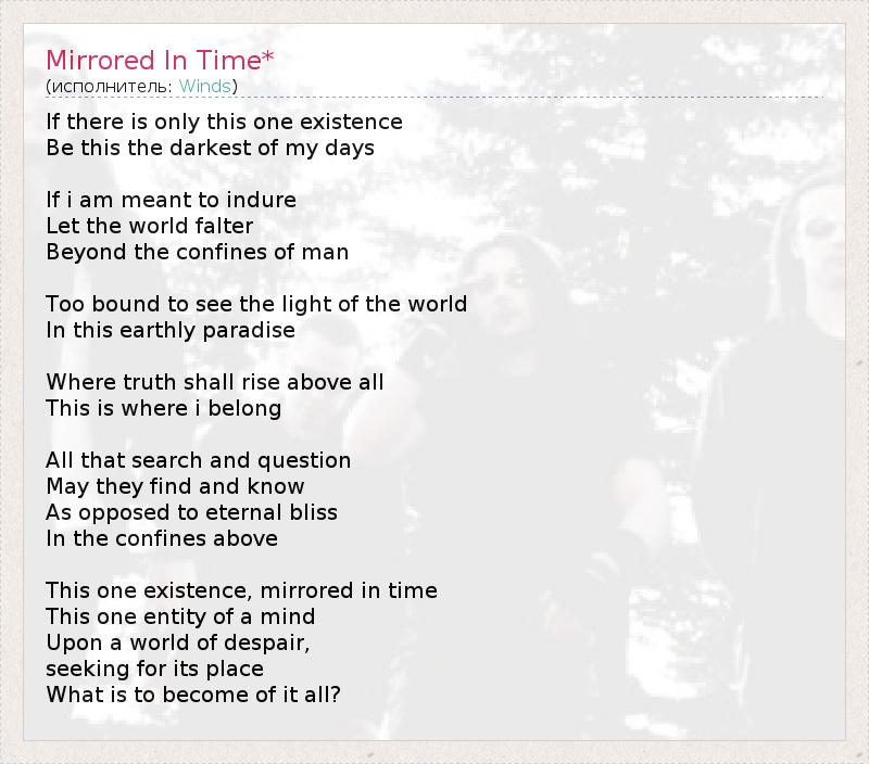 А как ты думаешь, о чем песня "Mirrored In Time*" ?