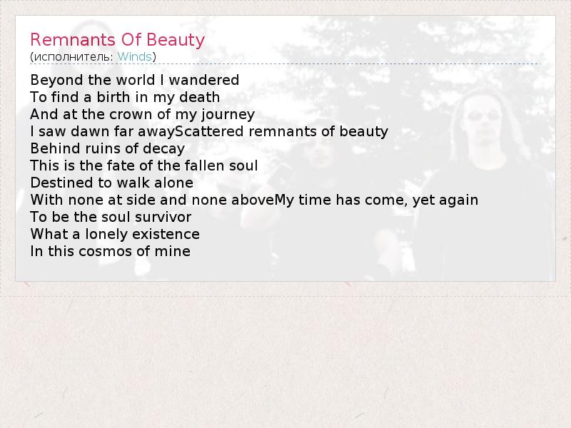А как ты думаешь, о чем песня "Remnants Of Beauty" ?