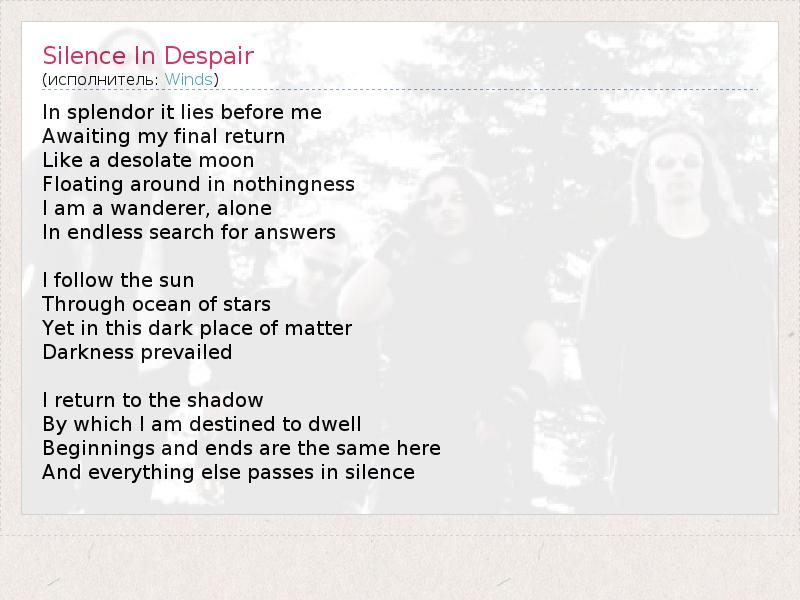 А как ты думаешь, о чем песня "Silence In Despair" ?