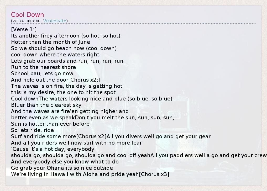 Cool downThe waters looking nice and blue (so blue, so blue)