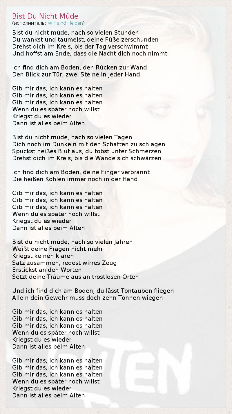 А как ты думаешь, о чем песня "Bist Du Nicht Müde" ?