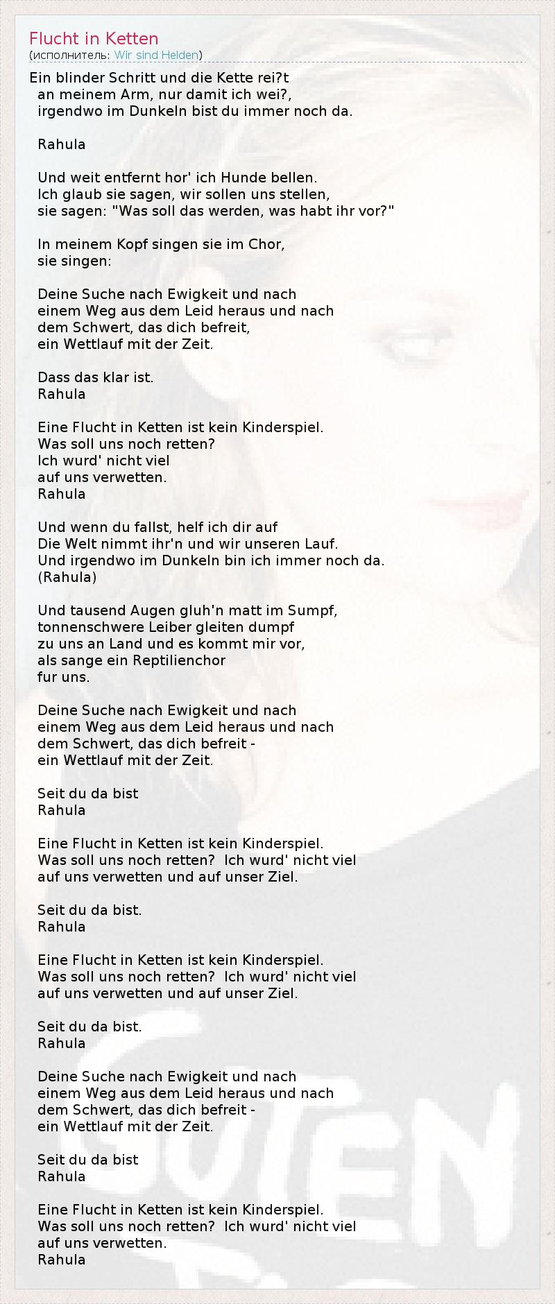 А как ты думаешь, о чем песня "Flucht in Ketten" ?