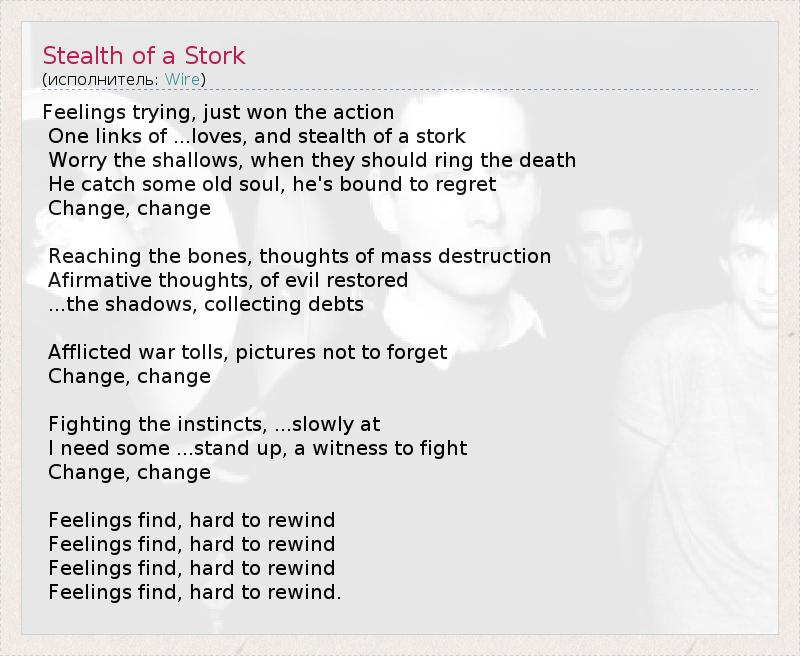 ГлавнаяИсполнителиWireStealth of a Stork