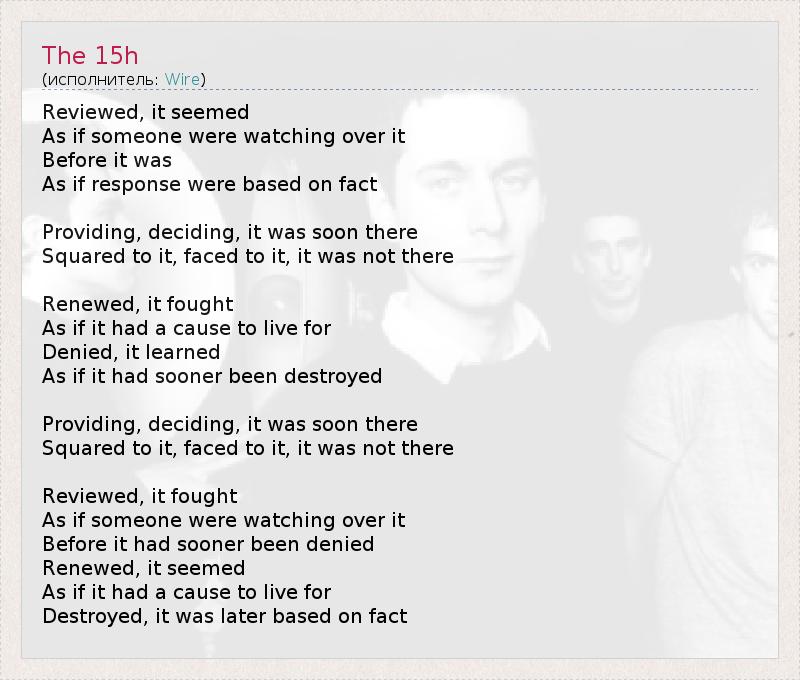 Это интересно:Wire — британская рок-группа, образовавшаяся в 1976 году в Уотфорд, Англия, и считающаяся одним из наиболее влиятельных коллективов новой волны. Wire, начинав свой творческий путь на панк-сцене (свидетельство чему — участие в компиляции Live at The Roxy), быстро отдалилась от общего направления, взявшись за создание экспериментальной, не поддающейся прямой категоризации музыки. Пресса отмечала у... продолжение