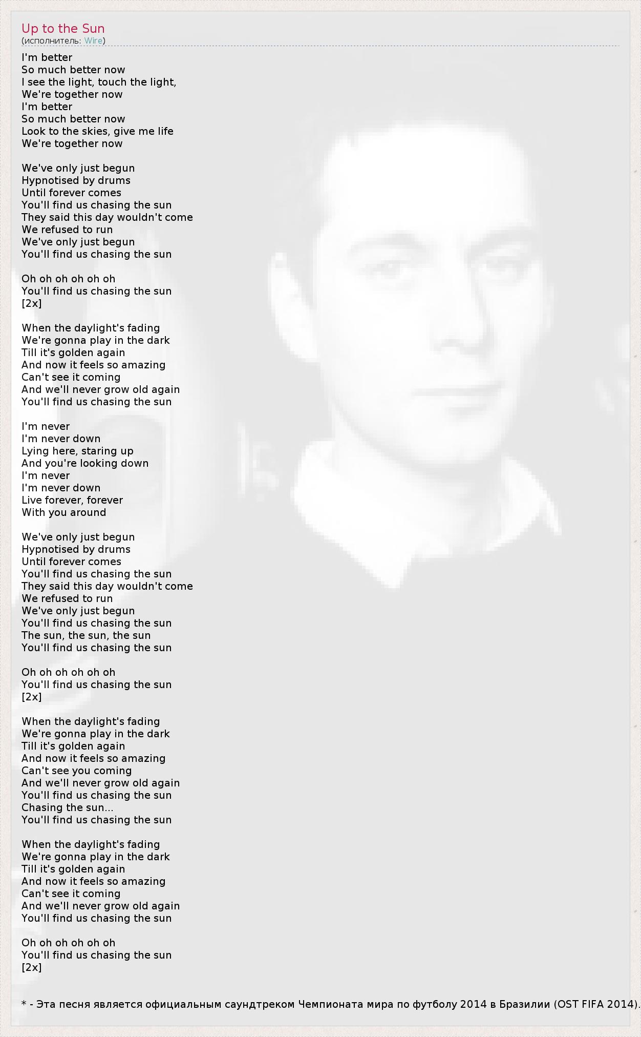 * - Эта песня является официальным саундтреком Чемпионата мира по футболу 2014 в Бразилии (OST FIFA 2014).