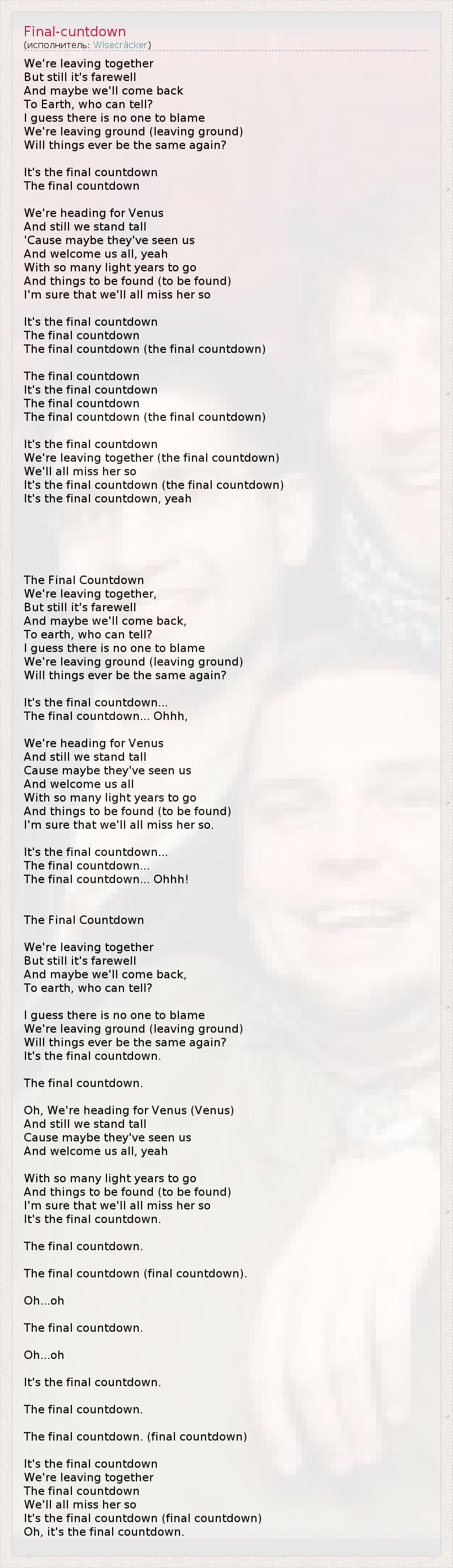 А как ты думаешь, о чем песня "Final-cuntdown" ?