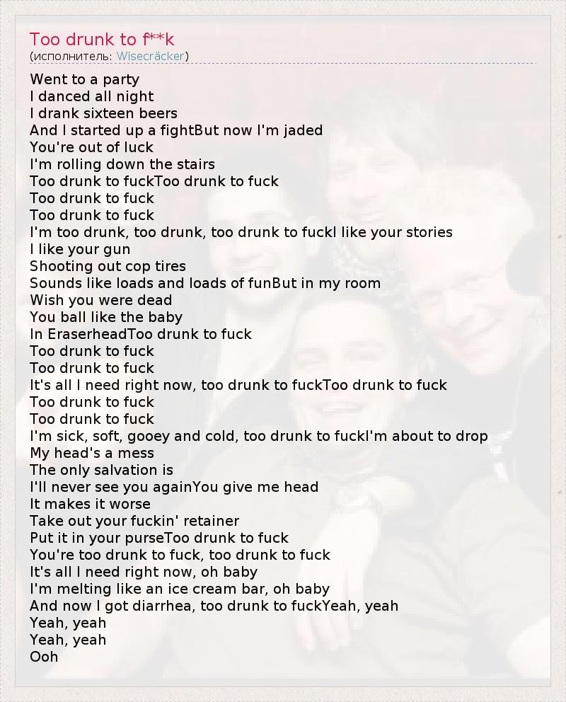 А как ты думаешь, о чем песня "Too drunk to f**k" ?