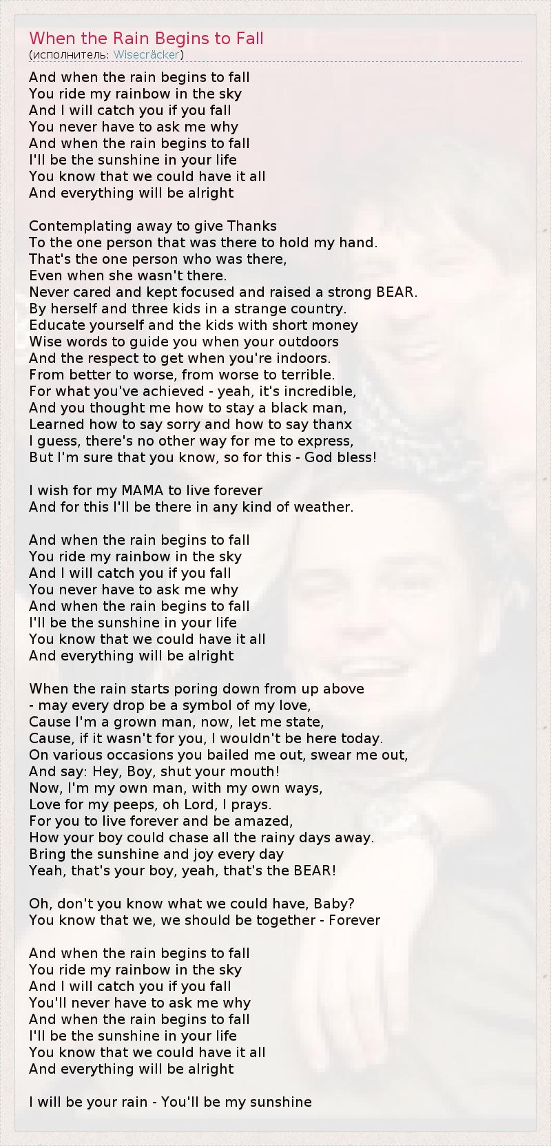 А как ты думаешь, о чем песня "When the Rain Begins to Fall" ?