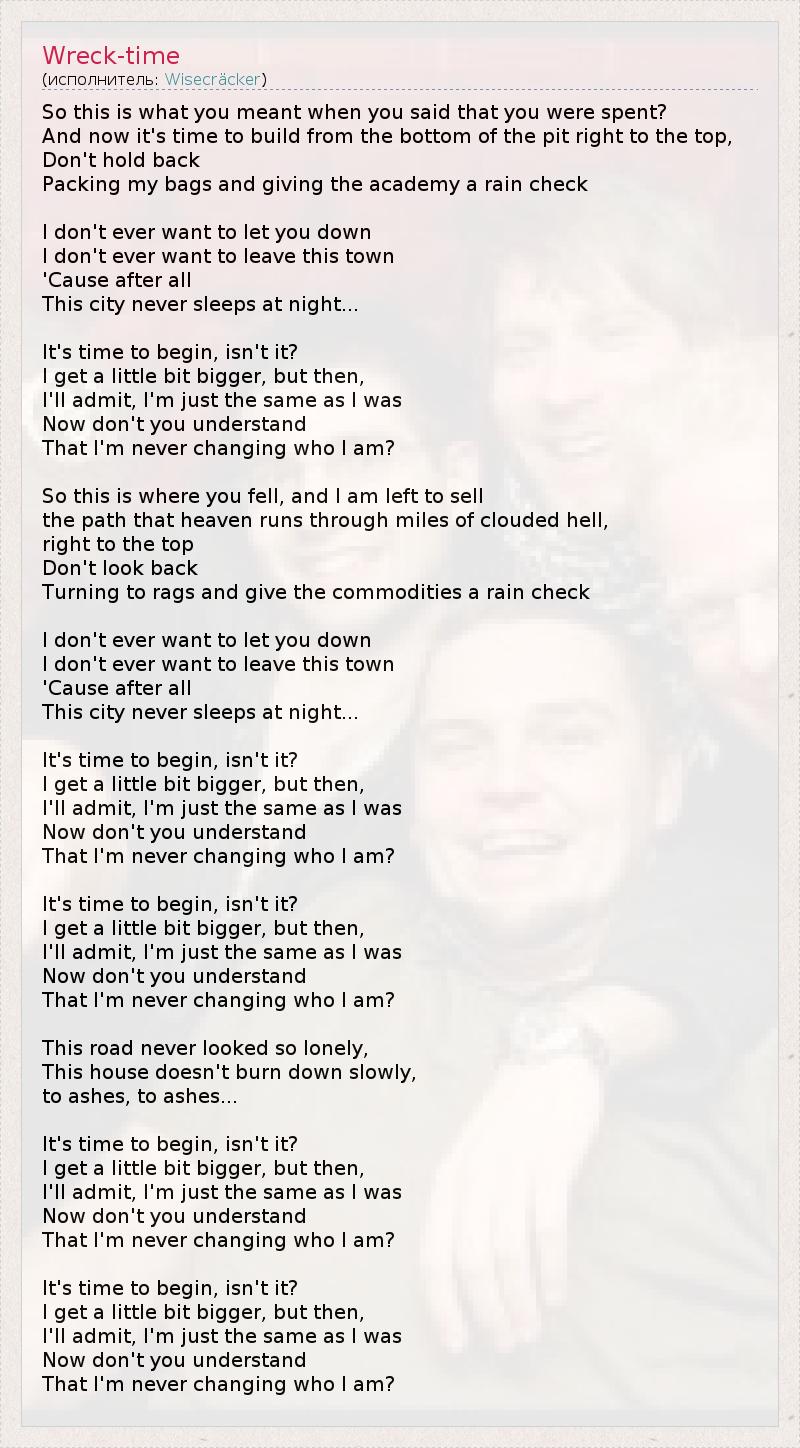 А как ты думаешь, о чем песня "Wreck-time" ?