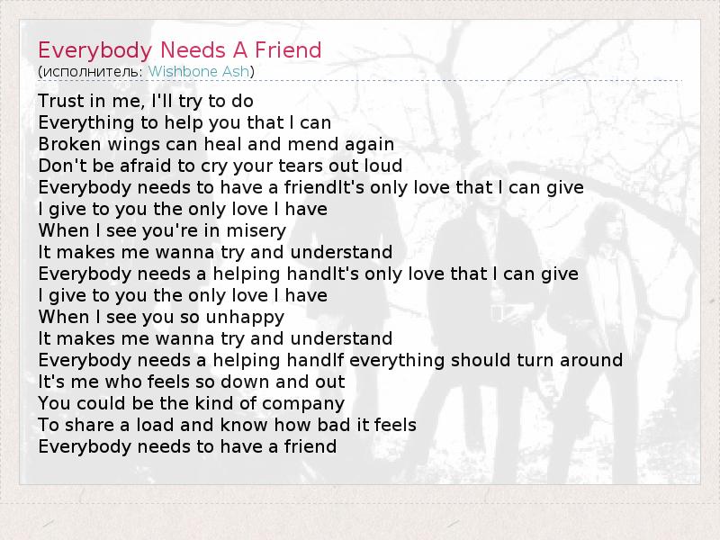 А как ты думаешь, о чем песня "Everybody Needs A Friend" ?