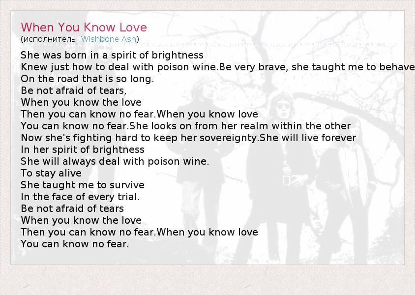 А как ты думаешь, о чем песня "When You Know Love" ?