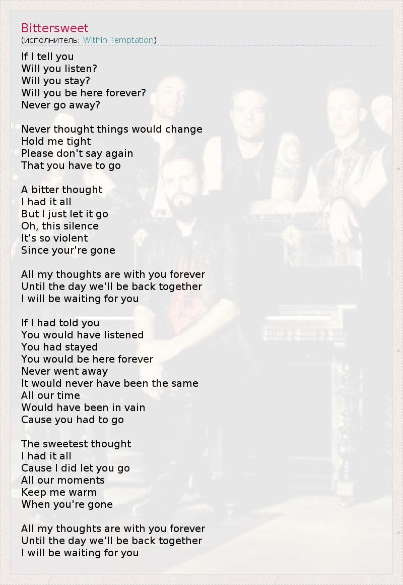 А как ты думаешь, о чем песня "Bittersweet" ?