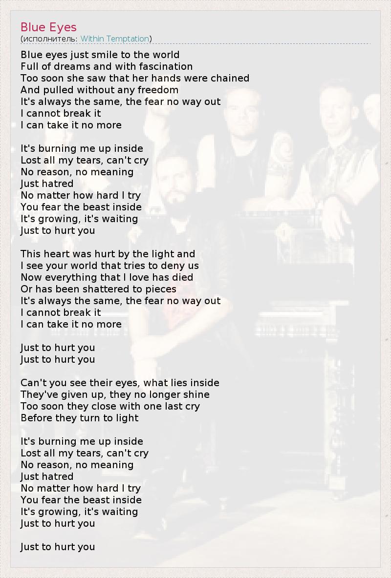А как ты думаешь, о чем песня "Blue Eyes" ?