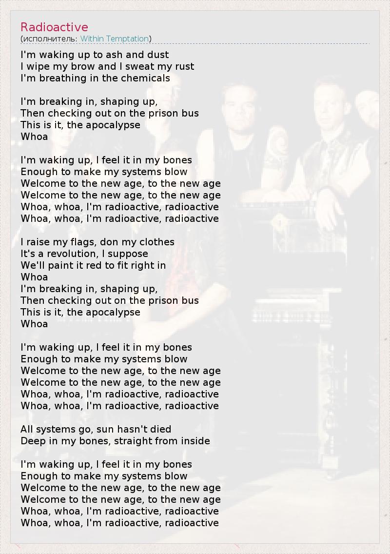 Whoa, whoa, I'm radioactive, radioactive