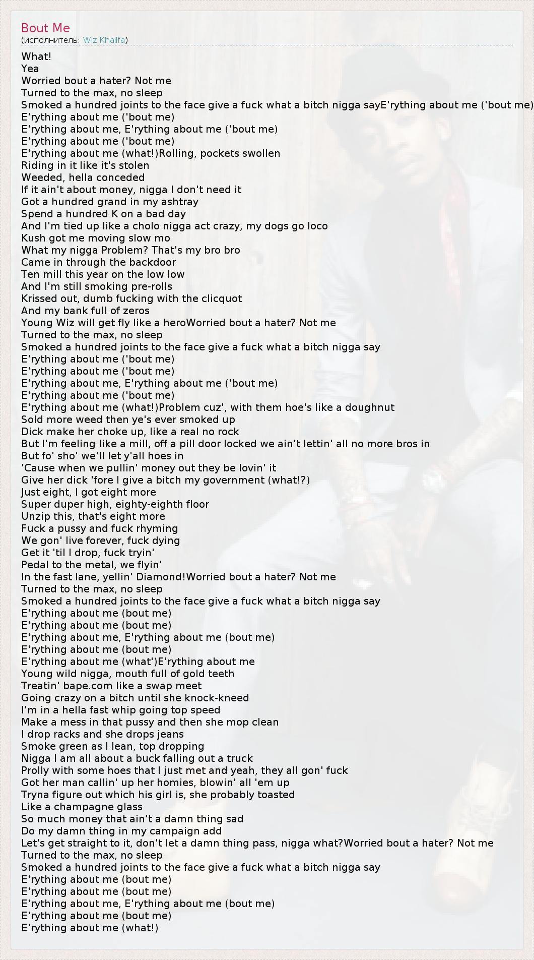 Smoked a hundred joints to the face give a fuck what a bitch nigga sayE'rything about me ('bout me)