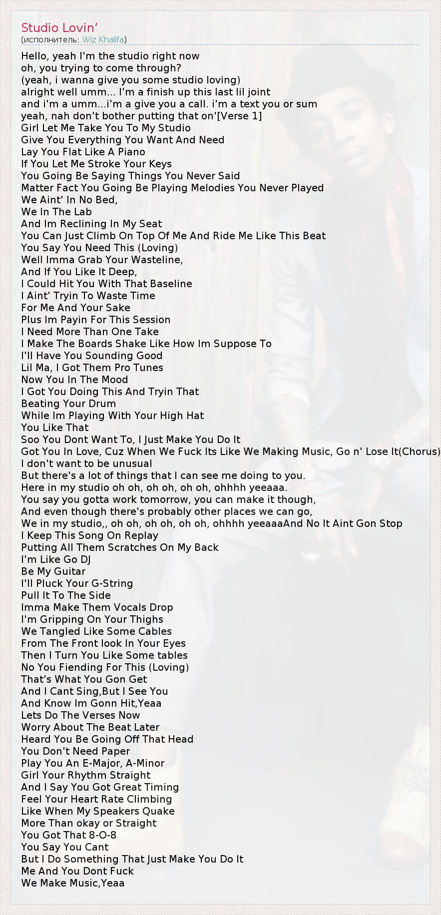 А как ты думаешь, о чем песня "Studio Lovin’" ?