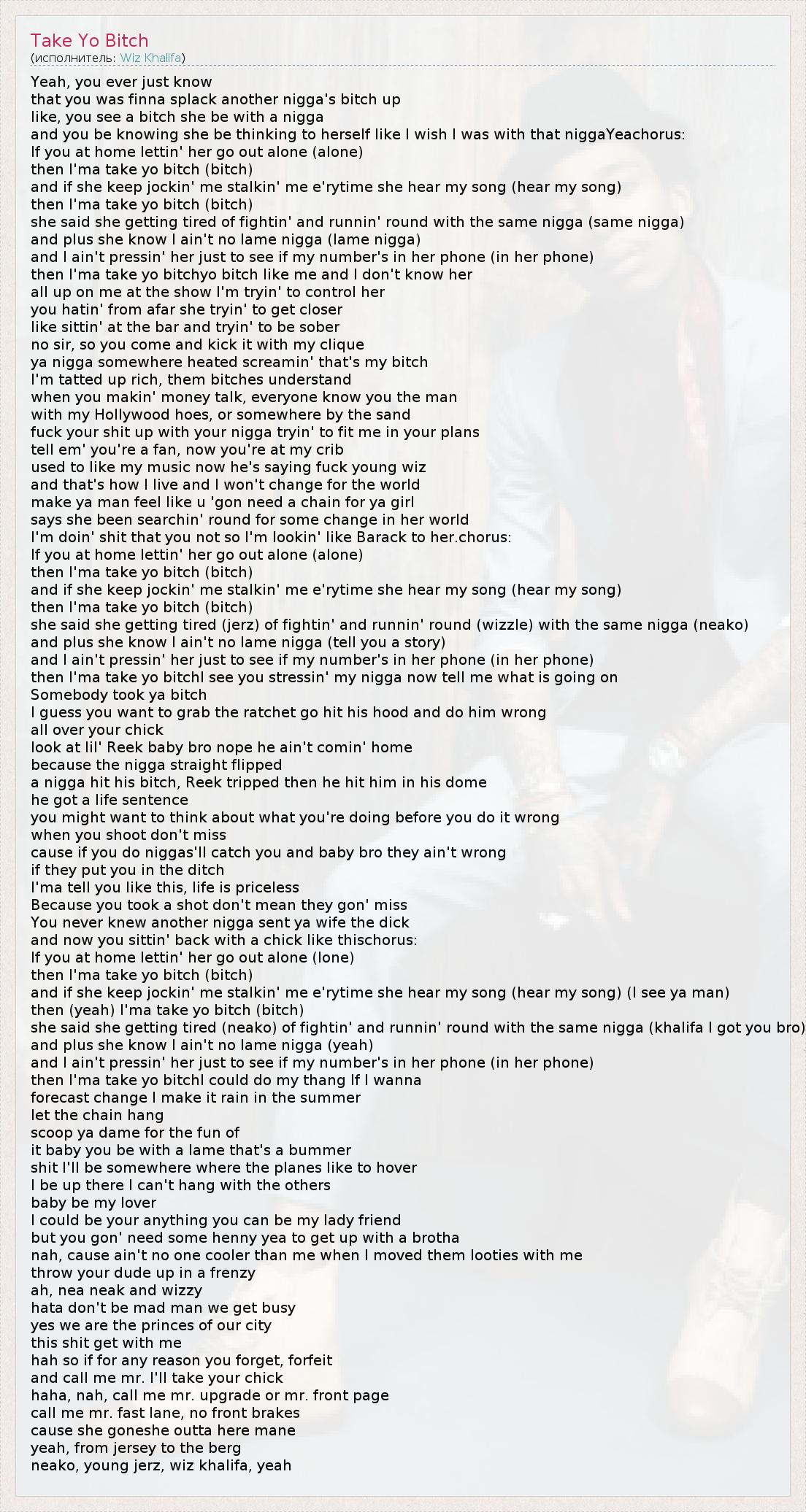 А как ты думаешь, о чем песня "Take Yo Bitch" ?