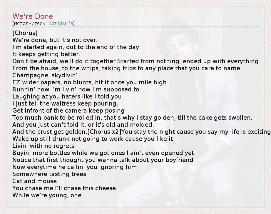 Это интересно:Wiz Khalifa - американский рэппер, настоящее имя Cameron Jibril Thomaz, родился 8 сентября 1987 года, в городе Майнот, Северная Дакота.Мать и отец рэппера были военнослужащими, и семья переехала в Питтсбург, когда Khalifa было два года. За последнее десятилетие они успели также пожить в США, Германии, Англии и Японии.Рэп музыкой Wiz Khalifa увлекся под влиянием таких рэп звезд, как Jay-Z, Cam'ron... продолжение