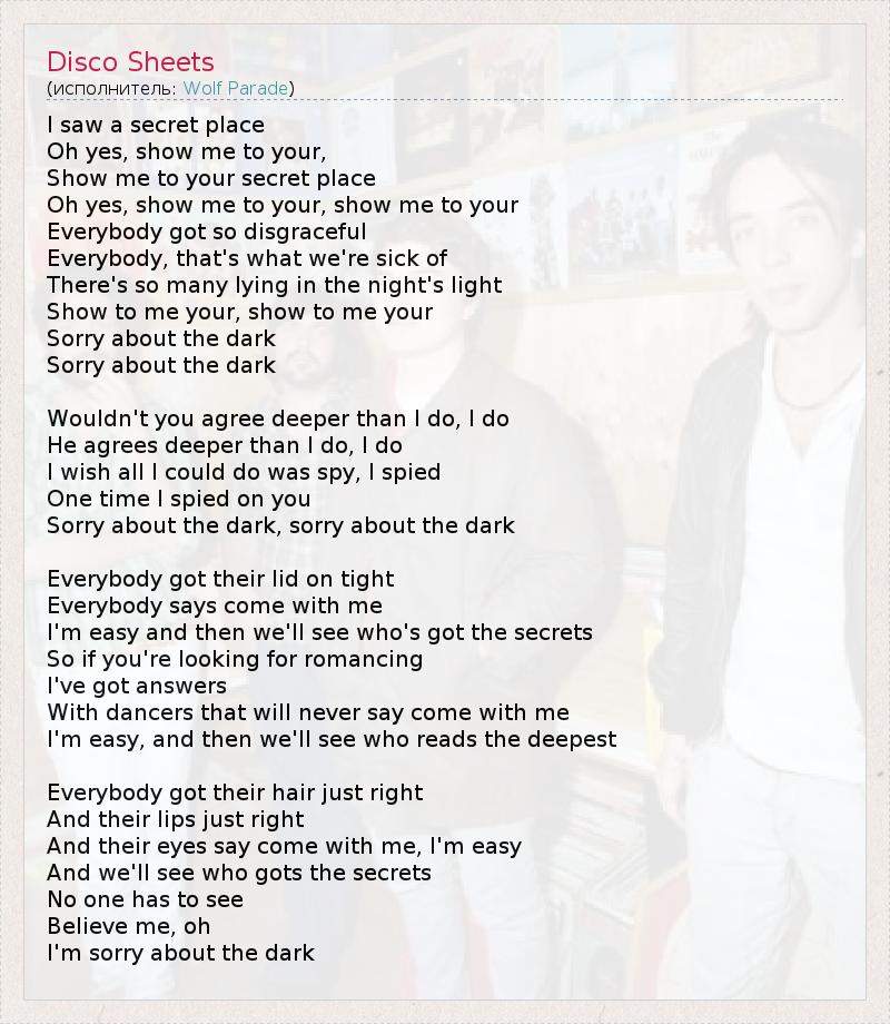 А как ты думаешь, о чем песня "Disco Sheets" ?