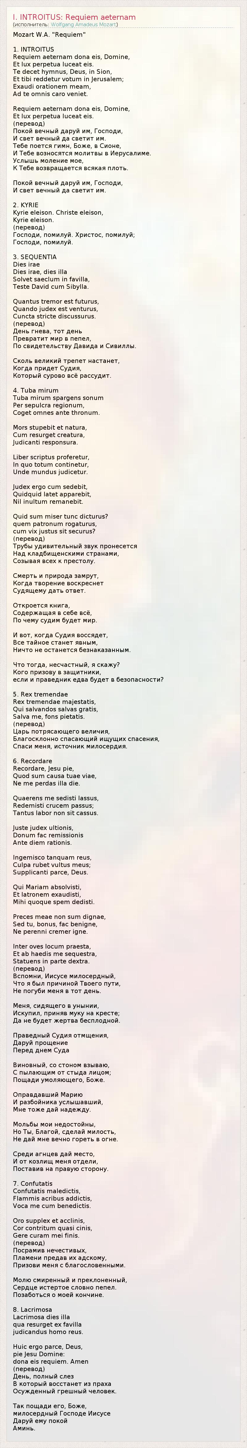 А как ты думаешь, о чем песня "I. INTROITUS: Requiem aeternam" ?