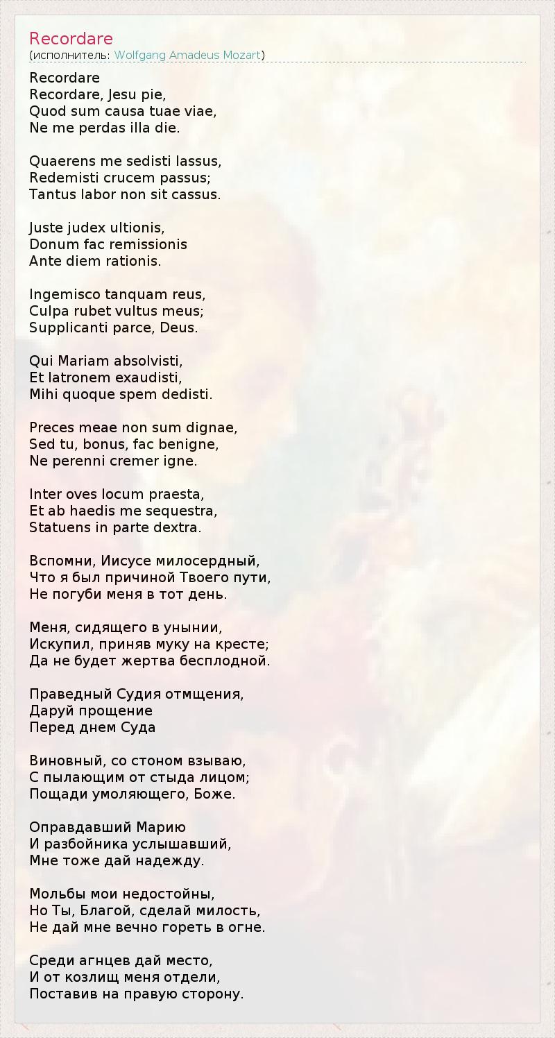 Это интересно:Вольфганг Амадей Моцарт (нем. Wolfgang Amadeus Mozart, полное имя Johannes Chrysostomus Wolfgangus Theophilus Mozart — Йоханн Хризостом Вольфганг Теофил Моцарт; 27 января 1756 — 5 декабря 1791) — один из величайших композиторов мира, один из основоположников классической музыки. Был также виртуозным скрипачом, клавесинистом, органистом, дирижёром. По свидетельству современников, обладал феноменальным музыкальным слухом,... продолжение
