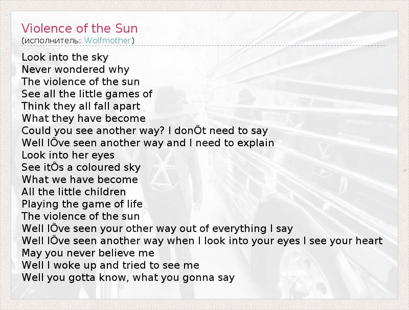 А как ты думаешь, о чем песня "Violence of the Sun" ?