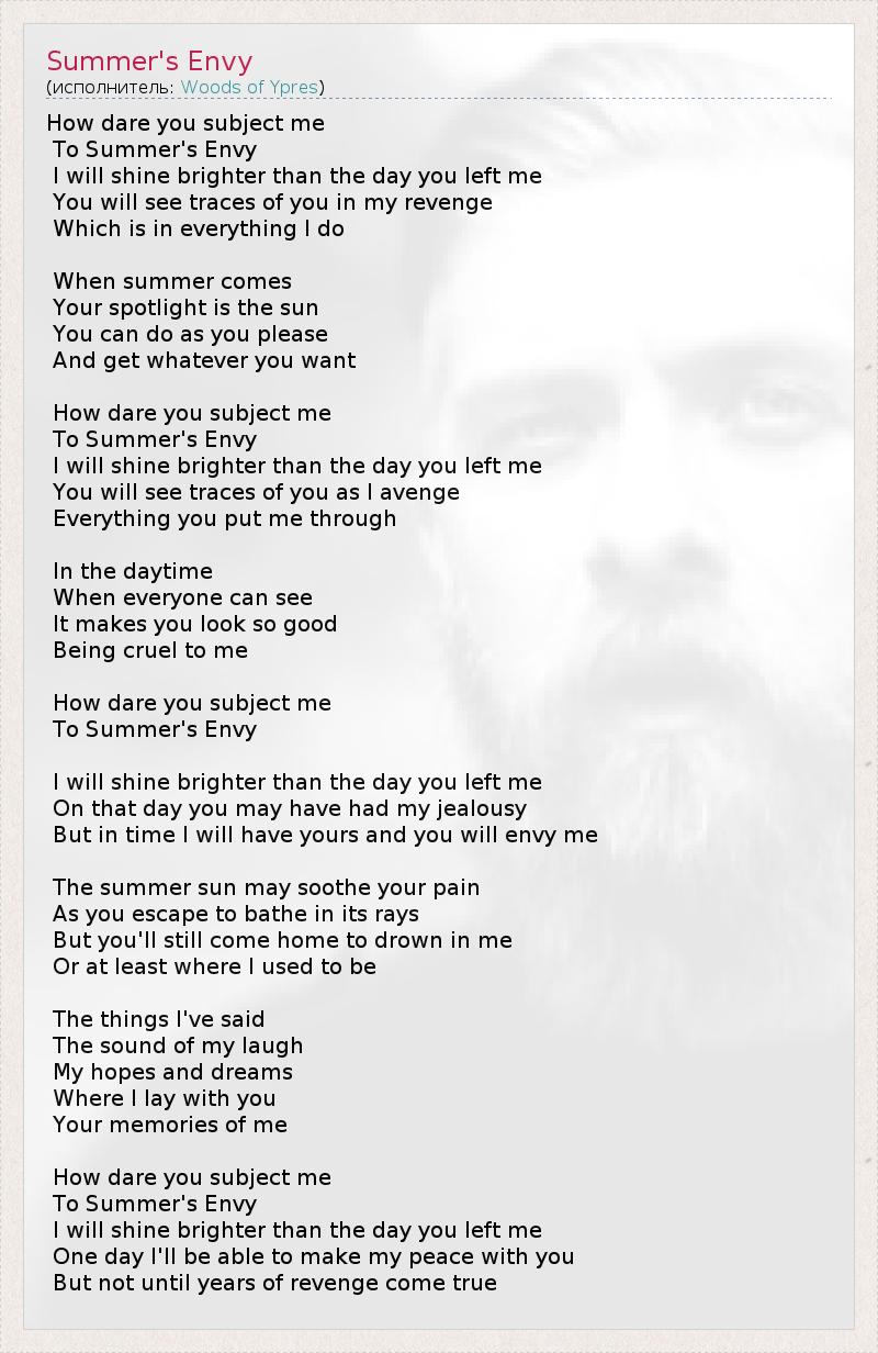 А как ты думаешь, о чем песня "Summer's Envy" ?