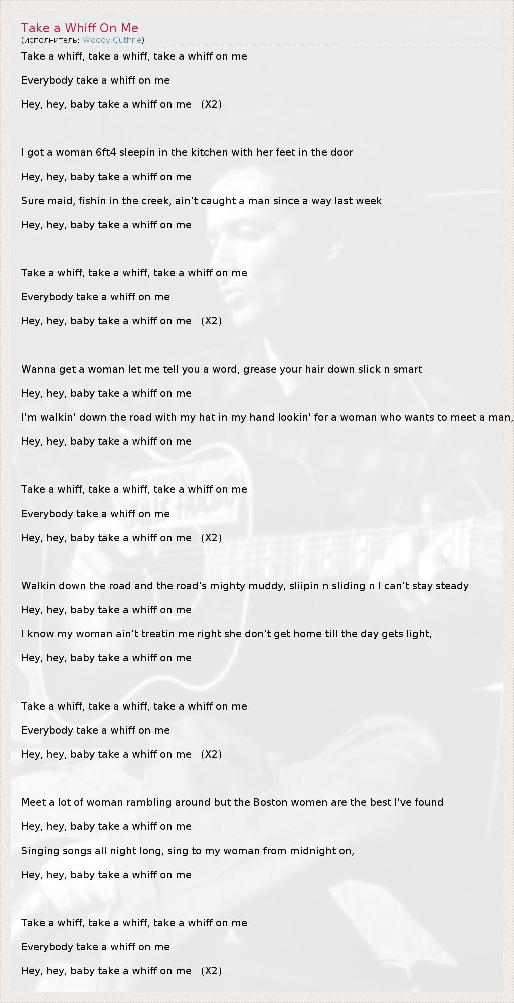 А как ты думаешь, о чем песня "Take a Whiff On Me" ?