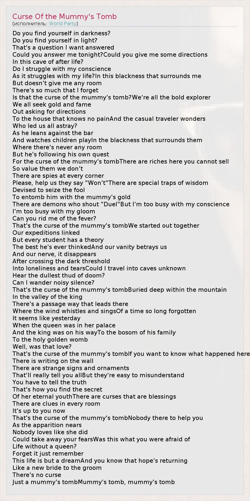 А как ты думаешь, о чем песня "Curse Of the Mummy's Tomb" ?
