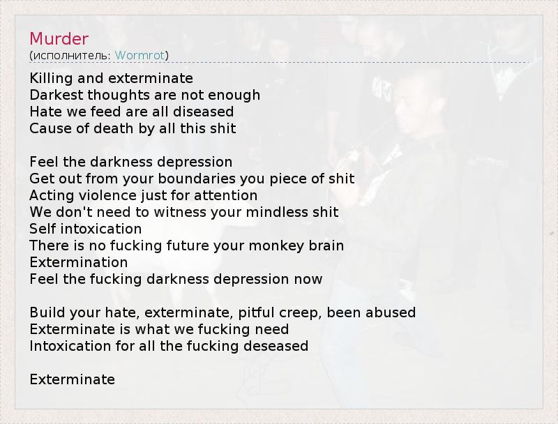 Создайте свой ненависть , уничтожить, pitful ползучести , злоупотребляли