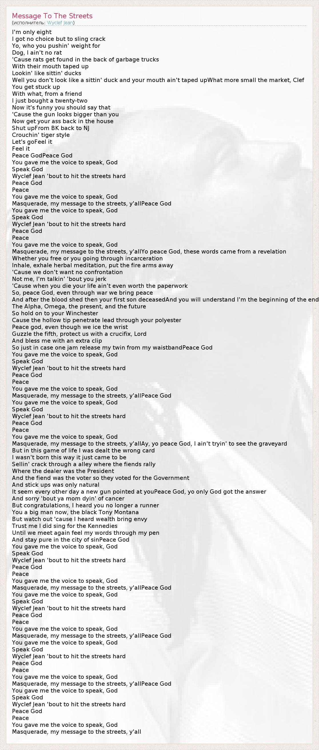 А как ты думаешь, о чем песня "Message To The Streets" ?