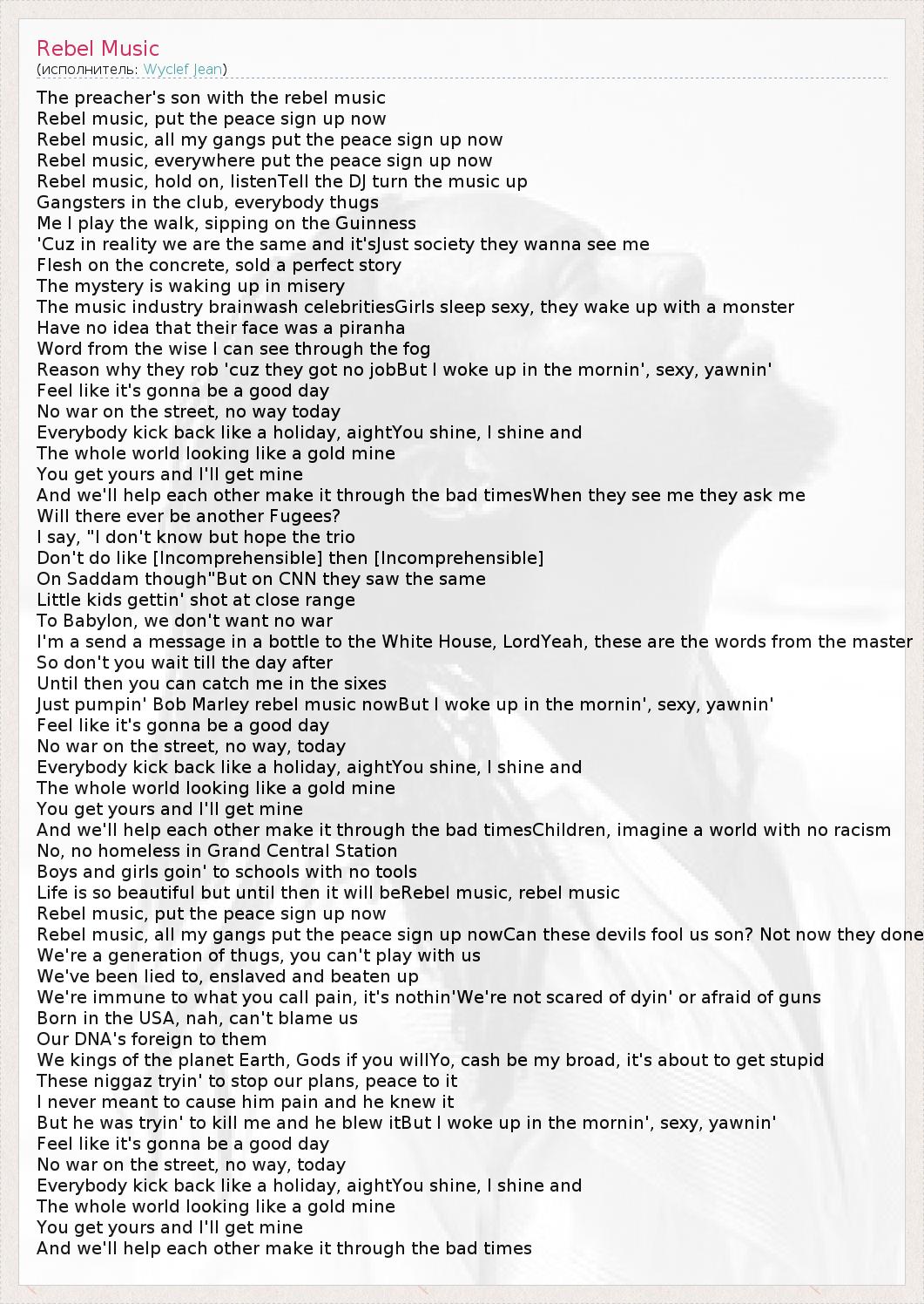 А как ты думаешь, о чем песня "Rebel Music" ?