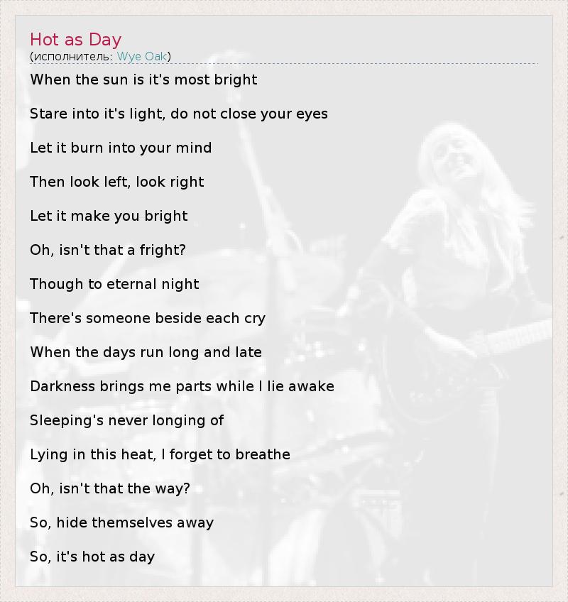 А как ты думаешь, о чем песня "Hot as Day" ?