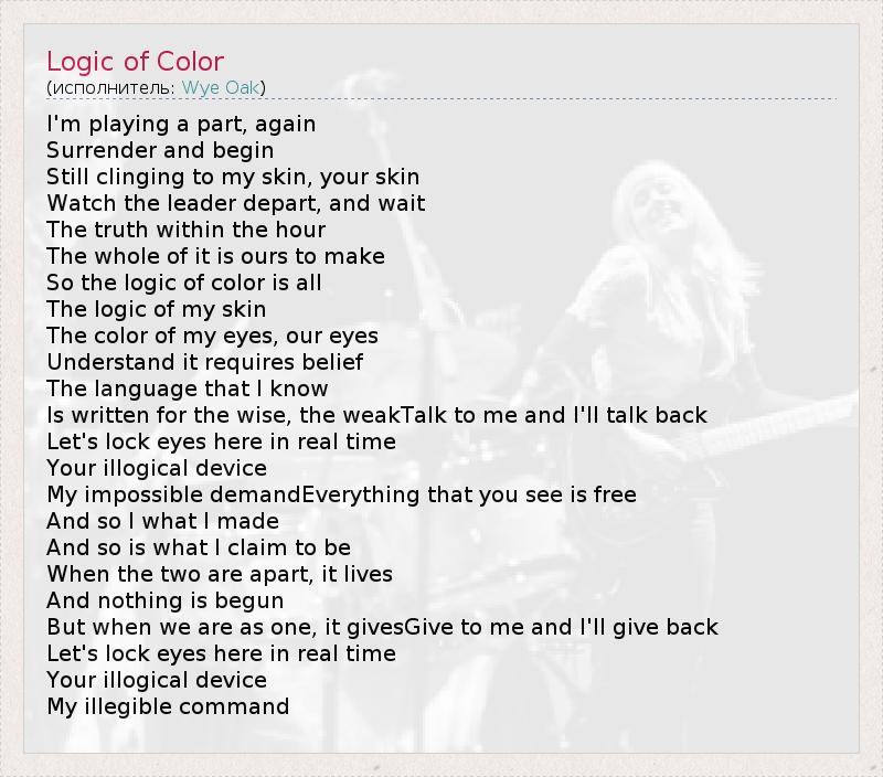 А как ты думаешь, о чем песня "Logic of Color" ?