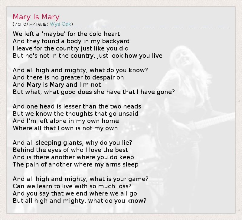 А как ты думаешь, о чем песня "Mary Is Mary" ?