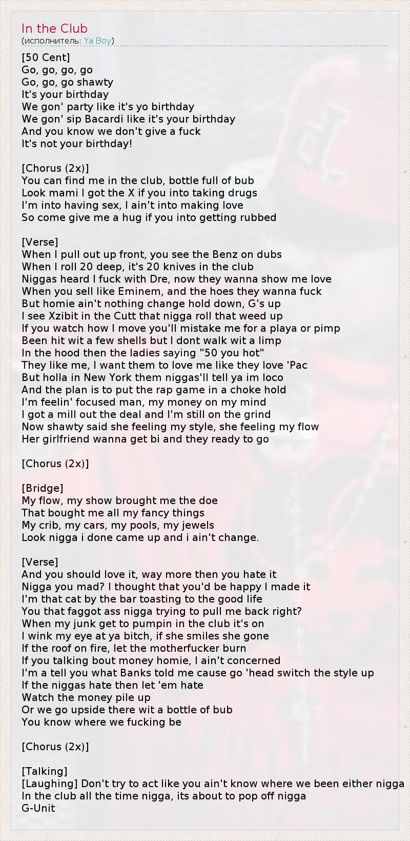 А как ты думаешь, о чем песня "In the Club" ?