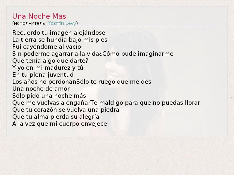 А как ты думаешь, о чем песня "Una Noche Mas" ?