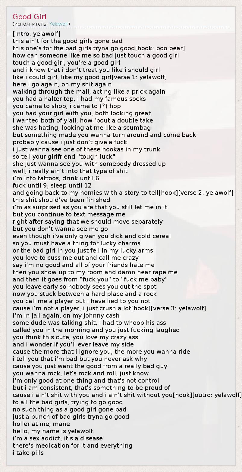 А как ты думаешь, о чем песня "Good Girl" ?