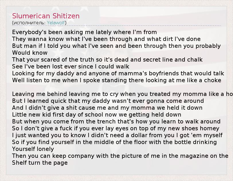 А как ты думаешь, о чем песня "Slumerican Shitizen" ?
