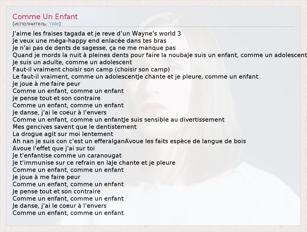А как ты думаешь, о чем песня "Comme Un Enfant" ?