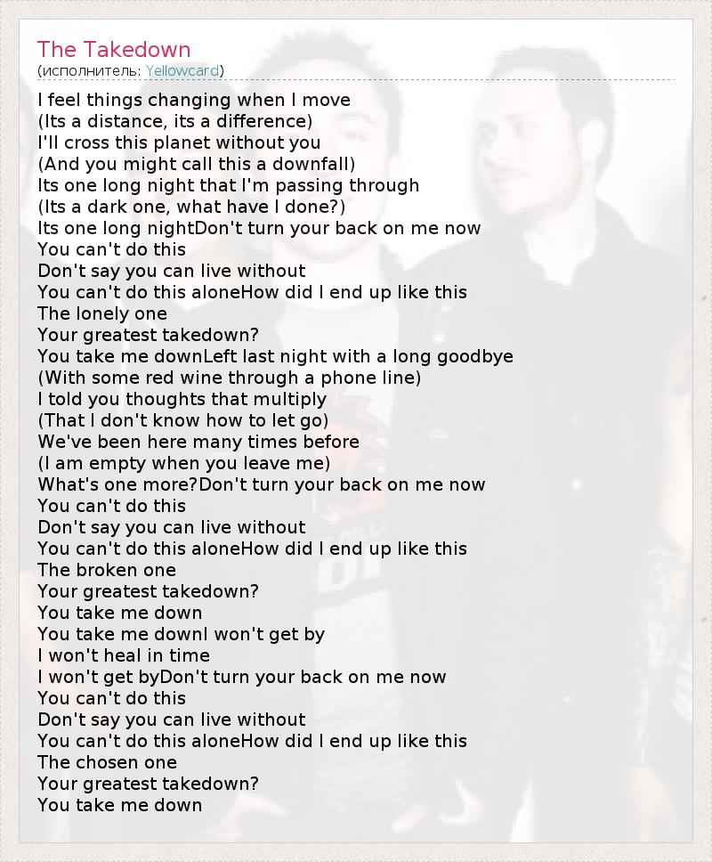 Это интересно:Yellowcard была создана в далеком 1997 году в США, город Джексонвилл, штат Флорида. Каждый альбом группы не похож на предыдущий, они постоянно экспериментируют со стилем исполнения. Жанр творчества — сочетание панк рока и альтернативы. В их музыке используется скрипка, которая в последних альбомах встречается довольно часто.В самом начале в состав Yellowcard входили Бэн Добсон, Тед Клэрри, Бен... продолжение